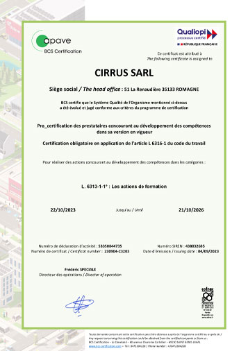 Cela fait déjà 20 ans que nous faisons appel aux services de la société CIRRUS, que ce soit pour de la formation, de la consultation ou de l’audit.